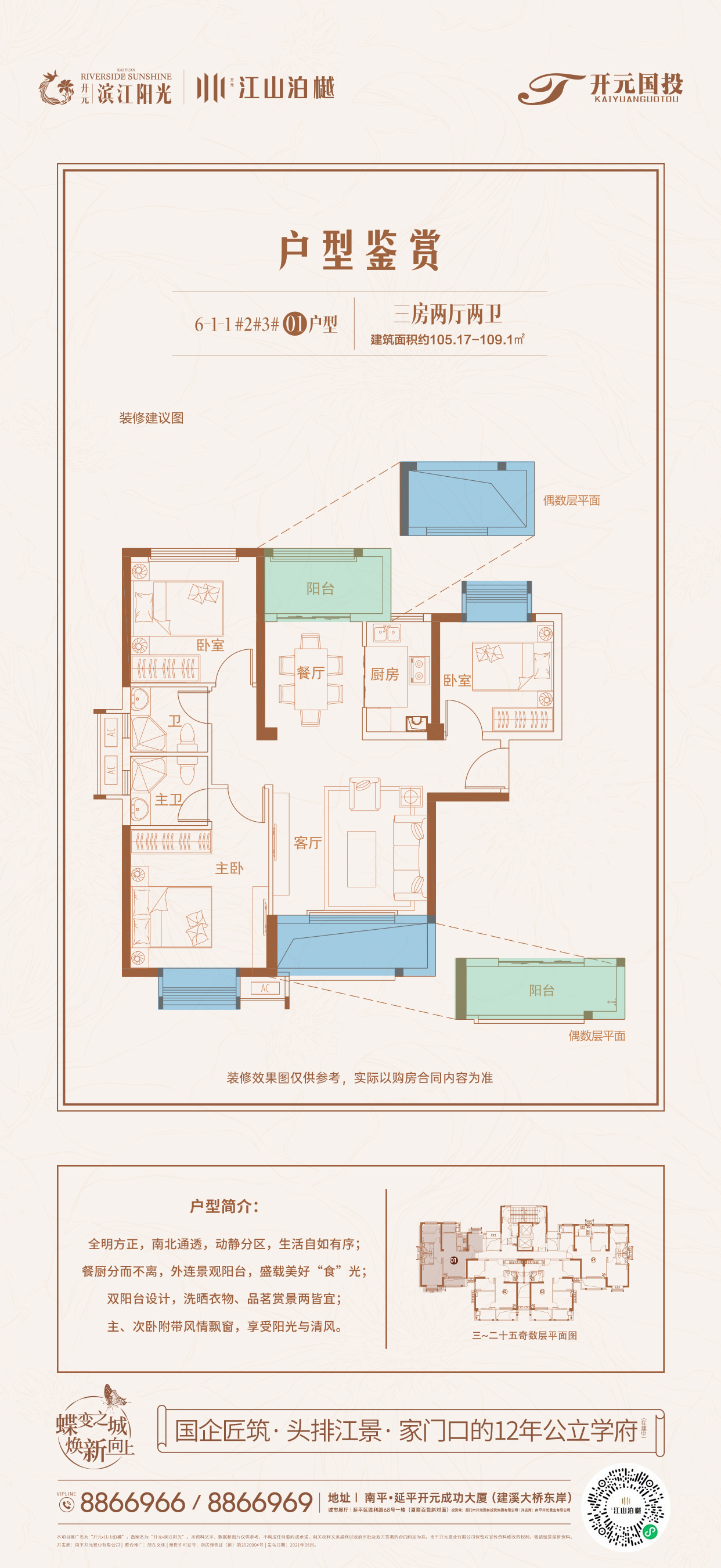 开元滨江阳光3室2厅1厨1卫 总价待定